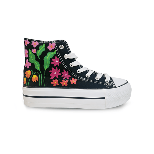 Zapatillas Pintadas Platform / Black / Florecitas
