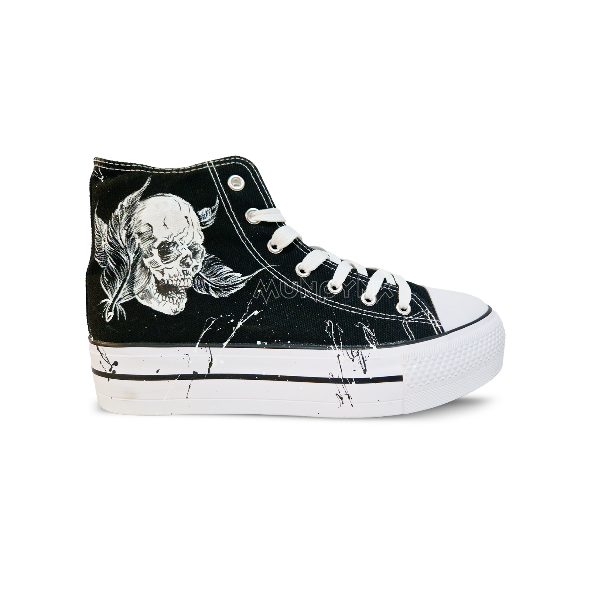 Zapatillas Pintadas Platform / Calavera con Pluma / Black
